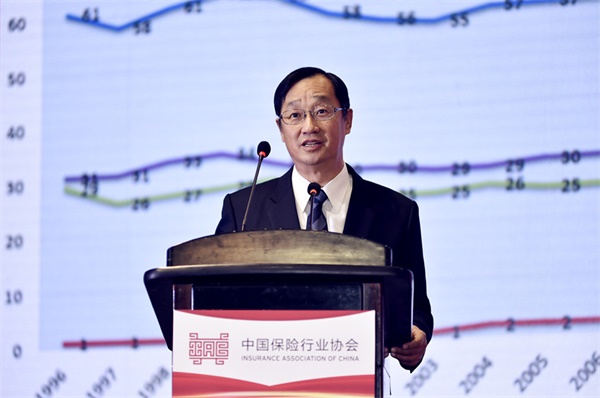 财团法人保险事业发展中心董事长桂先农在第三届中国保险业人才发展高峰会上做演讲